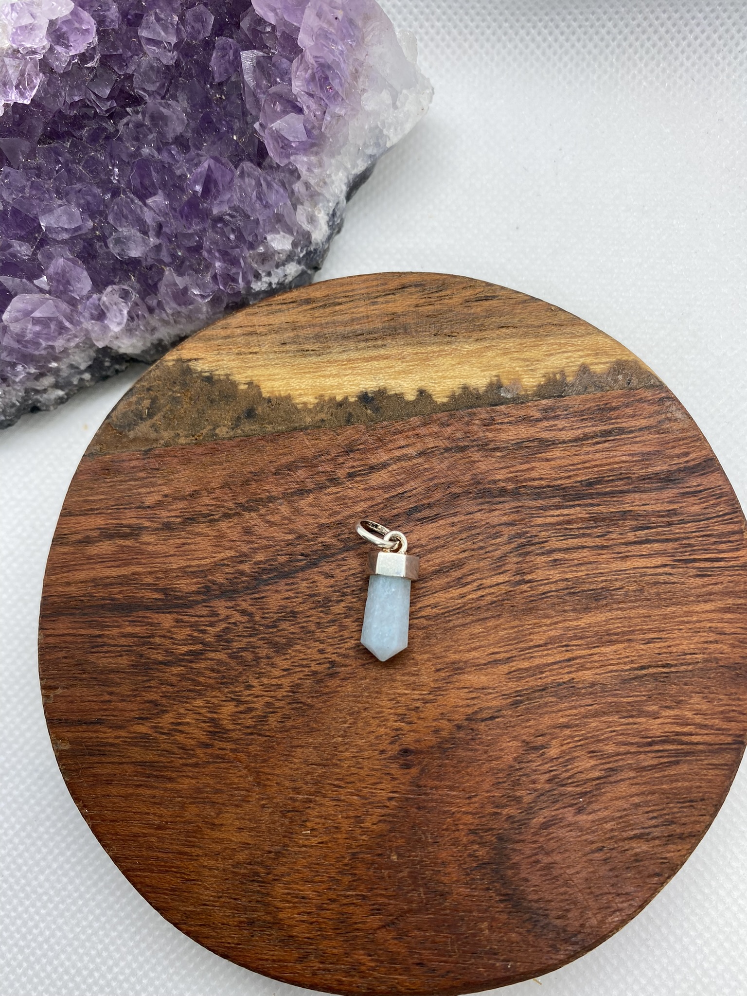 Crystal Aquamarine Sterling Silver Pendant Small 1cm