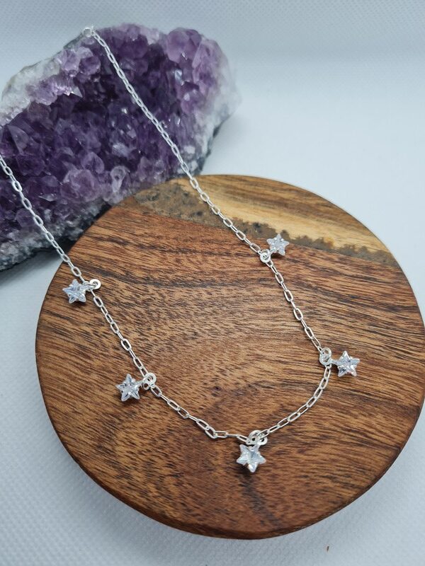 Full Zirconia Stars Sterling Silver Choker – 35cm