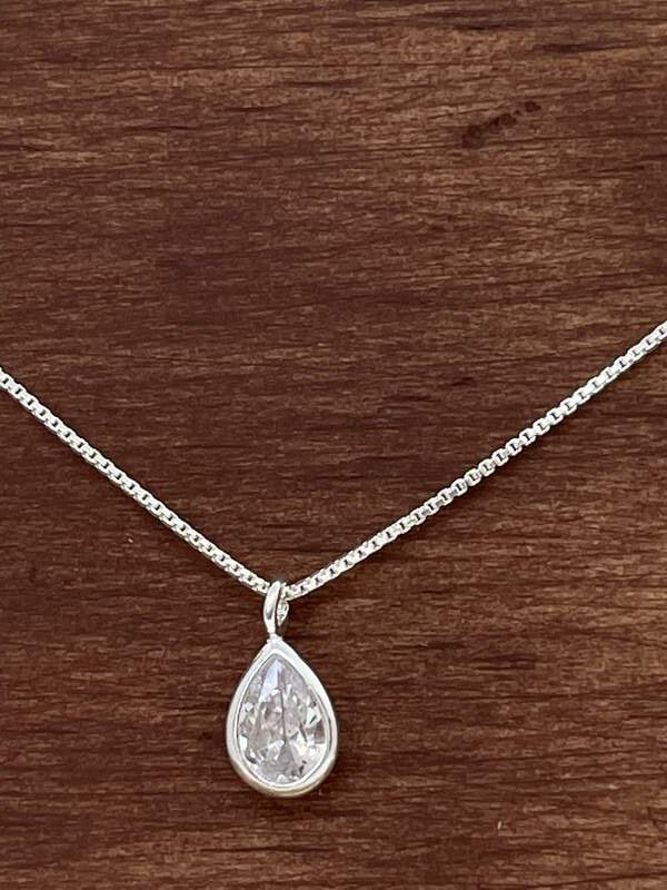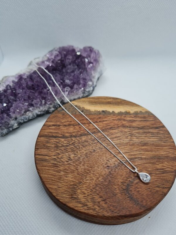Light Point Zirconia Drop Sterling Silver Necklace – 40cm